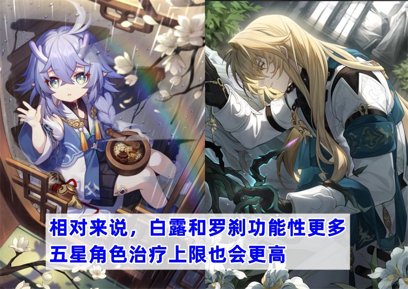 不过,娜塔莎的终结技一般就只有瞬抬血了,而白露还有“生息”效果。而娜塔莎的功能性也不算多,对比白露有复活,治疗量溢出时会增加生命上限,罗刹有不占战技点、治疗量更高的被动战技、进攻带来群体回复的结界,和终结技对敌方全体解除一个增益效果的功能,客观地说娜塔莎是稍逊一筹。