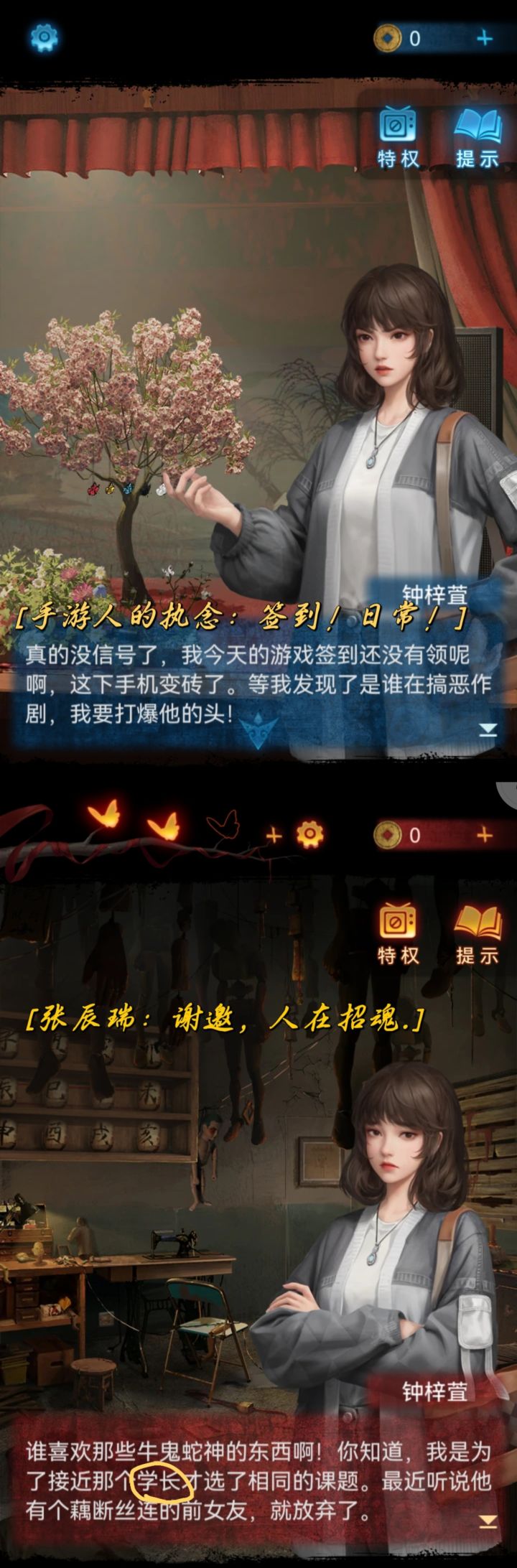 玩了5.8个小时,每个迷题都认认真真去解,其实感觉这季解密难度没有那么大,5.8的时长都花去截图,看剧情,和一些绕脑子的题了,我真的很认真!但是虽然弯弯绕多,都解出来了,成就感满满!但还是要说最后战袍元丰那个挡的操作,是我手机的问题吗,卡得我积极性都莫得了,最后选择了看广告,放过元丰,放过我。