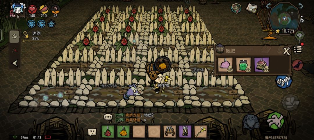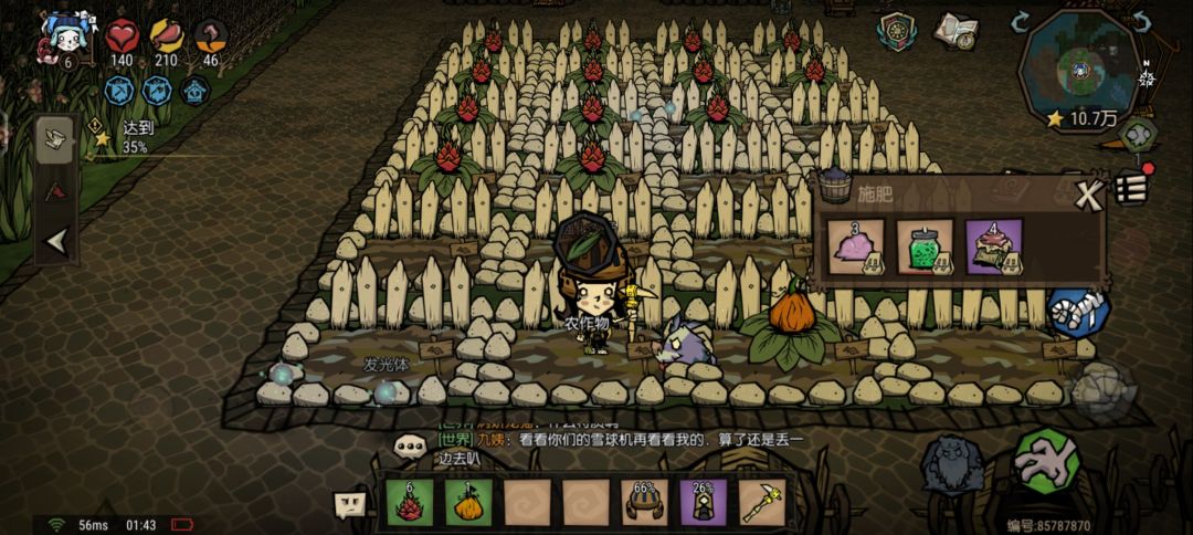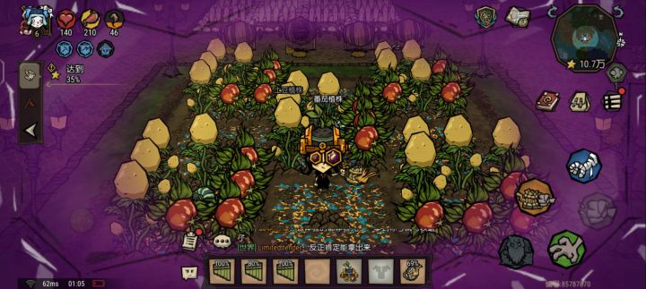 有有人说优化后出现的概率更大,这边个人尝试把催长剂、便便桶、腐烂物拉满(每阶段),并使用了牛角、排箫,音贝,包括身上演奏乐器的情况下,顺便让友好果蝇试了一下,尝试了PC那边的一些种法,并未发现巨大化的出现。太看脸了,望大家谨慎而行,待腾讯优化。