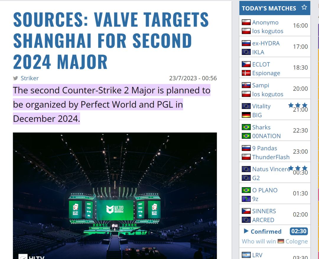 如果PW《CS2》上海Major如期进行,它将是《CS》首次在亚洲举行的Major锦标赛。外媒HLTV透露V社曾计划与亚洲合作举办2023年第二个Major,并考虑了中国和新加坡等地点,但由于《CS2》即将推出,他们取消了比赛。