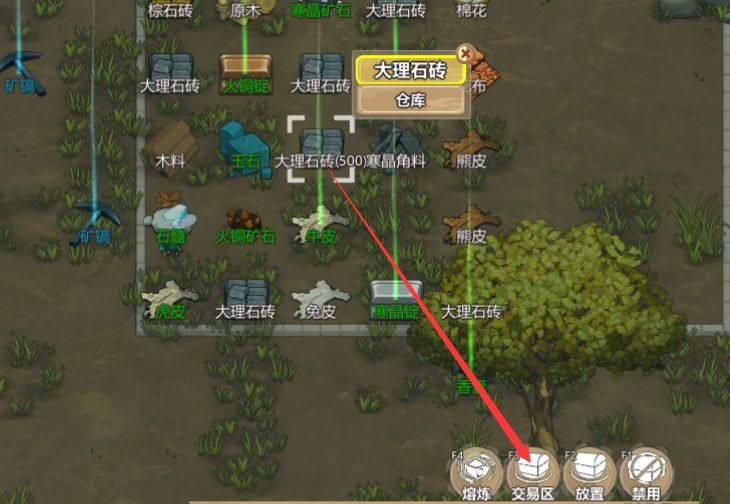 随便放点廉价物到交易区。因为我们从太一遗址拿回来的大理石砖用不完。放一些进去。