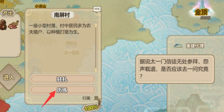 重要的事情忙完之后,可以去完成重建代理事件。派1个内门去历练南屏村。