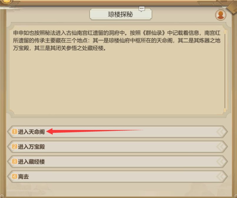 进琼楼后触发事件,选第一个就好。
