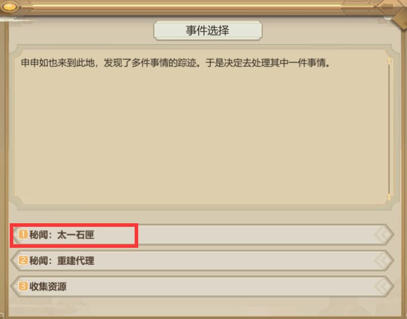 触发历练事件,选太一石匣。(重建代理暂且不管。)