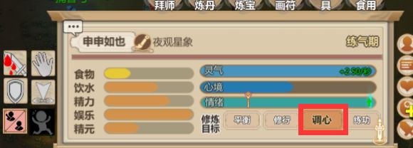 第二内门申申如也差不多筑基完成,晋升内门,同样学三阳火。研习并画申申符装备上。把蒲团指定给申申如也,同样修炼至结丹期。如果心境太差,就开启调心模式,拉高一下心境再修炼,心境太低,欲速则不达。