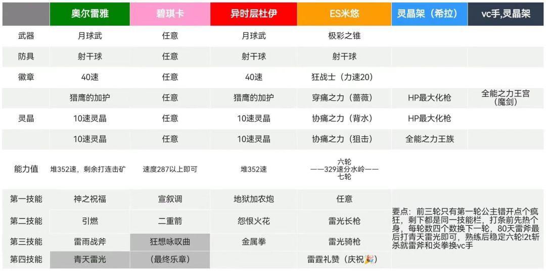 雷队配置就不多说了,如果不清楚的推荐@我特莫莱纳 大佬的帖子,下面附他给的雷队标准配置图