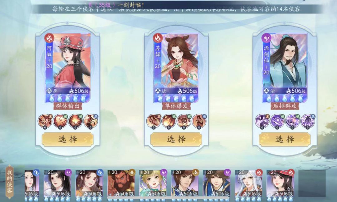 这里是书仙录的第一个重点,后续战斗中只有进了侠客池的侠客才可以上场。