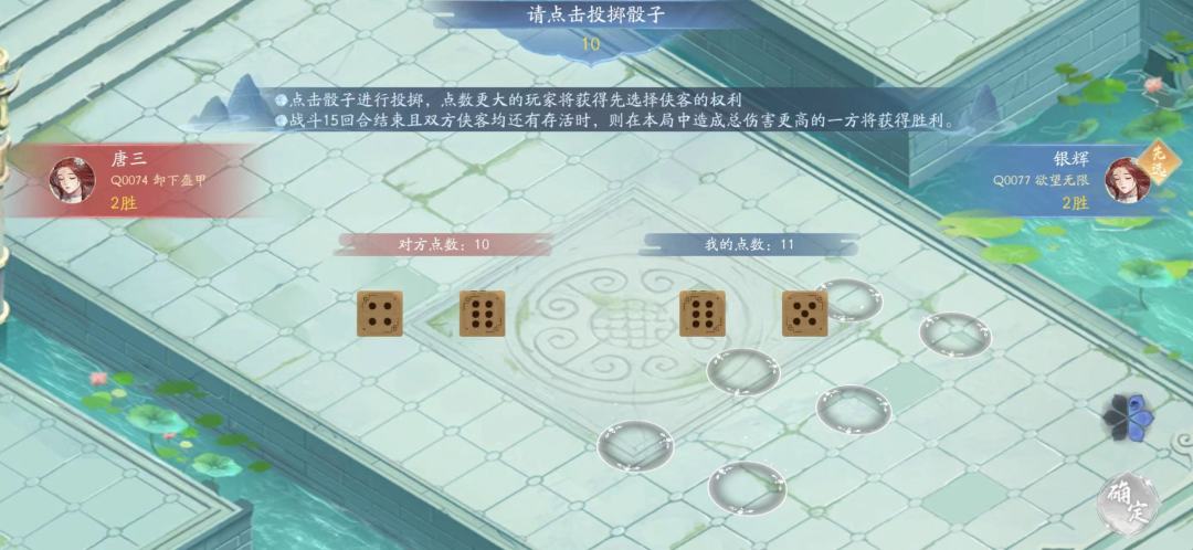 选好侠客池进入战斗,掷筛子决定先后手