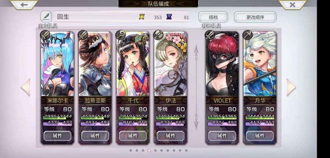 蓟的灵晶 用的背袭(瞄准) 、疾风之力(背水)、疾风之力潜解,梅丽落可以换 紫苑 或 时雨