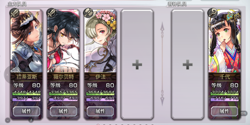 四人小队 薇尔贝特 主C,3把 痛剑 然后带瞄准 荆棘 背水,多打几回就过了。千代的做用主要就是开阵。