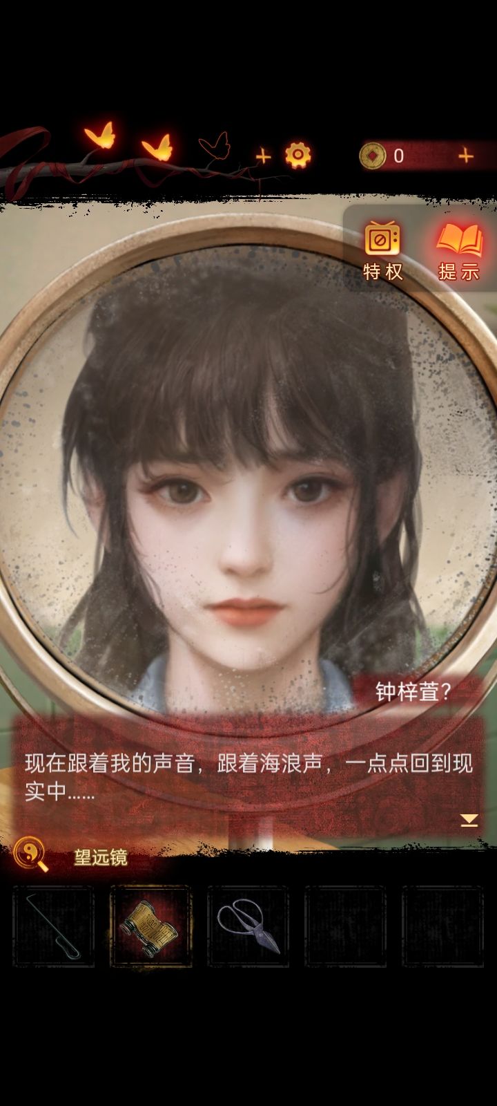 28.用望远镜看,看到一间密室,里面有很多人偶,有很多图案是测试卡片上的图案。