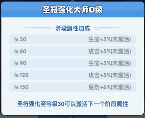 3.幻能圣符的等级达到一定阶段时(lv.30、60、90、120、150),会激活圣符强化大师,为英雄提供额外属性;