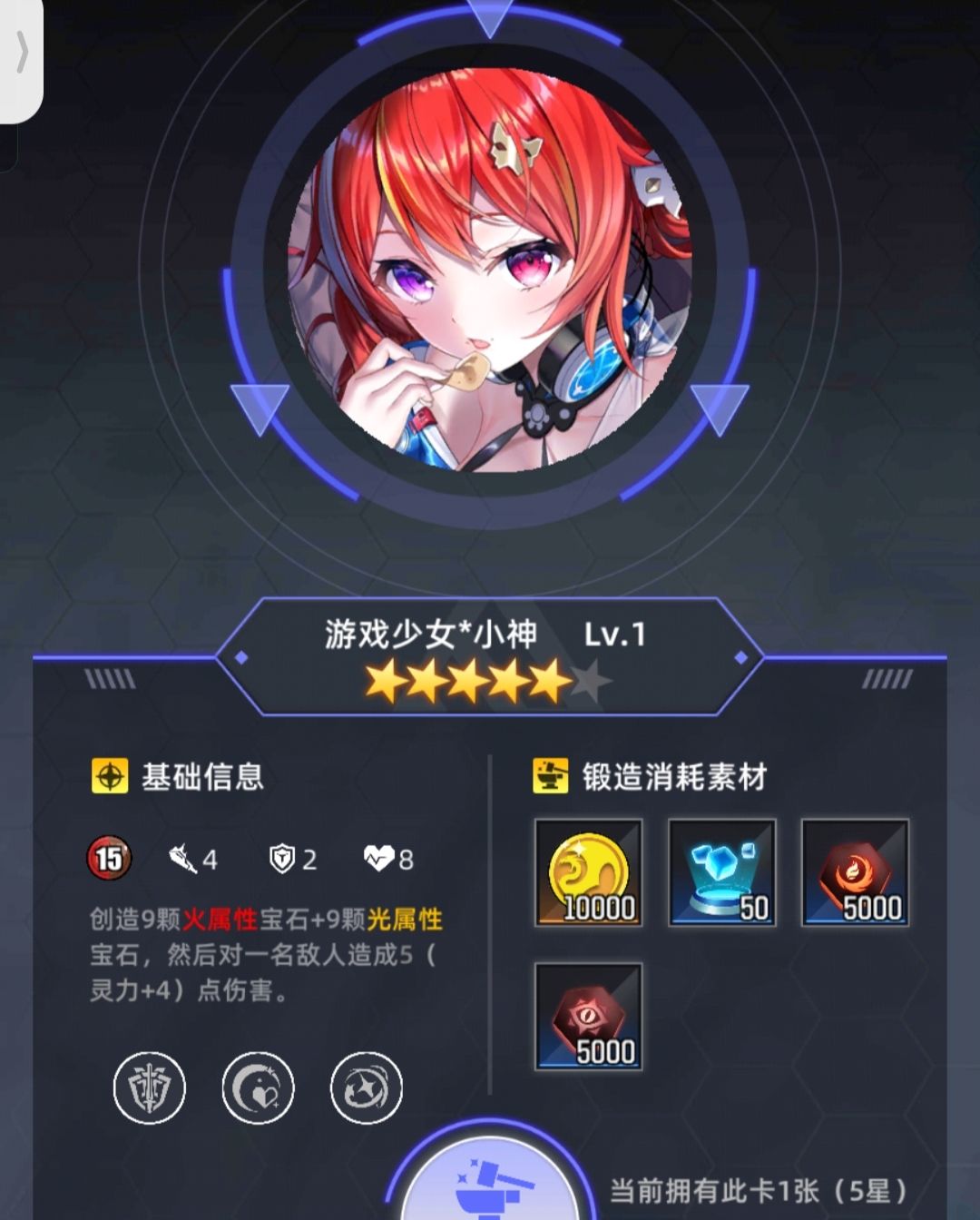 小贴士:百分之一的角色是可以通过扫码获取的(游戏内可以选择邮寄实体卡,实体卡到货后,卡正面是立绘,背面是二维码),相对于游戏内氪金换取钻石进行抽卡或者锻造资源的获取,是相对便宜的方式。