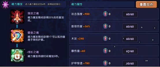 对于魂点不够用的同学,在满足穿透和暴击的前提下,各项属性平均分配点取,或者可根据自己面板来自己调整加点