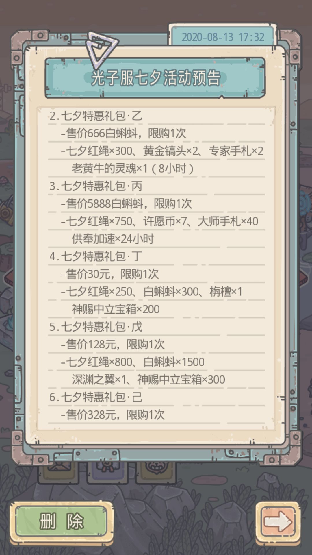 佳节礼包白蝌蚪三档都不贵,许愿币,供奉加速,镐子,奖券,不算亏吧