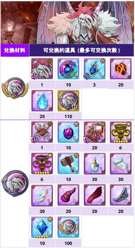 ※ 交換數量及可交換次數等詳細的資訊,可在遊戲內確認。