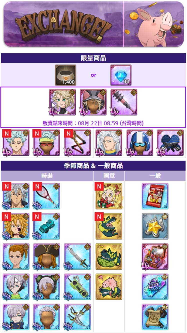 - 販賣期間 : 07/25 維護後 - 08/22 08:59