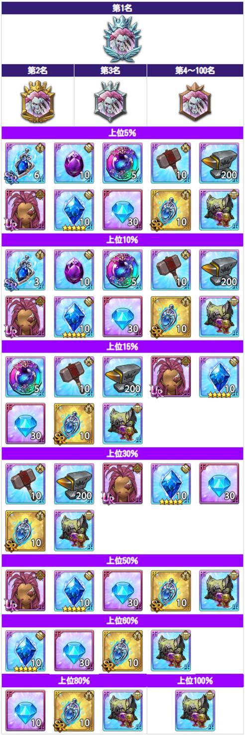 ※ 排名前100名包含"前5%",在獲得排名獎勵的同時,還可追加獲得王冠獎勵。