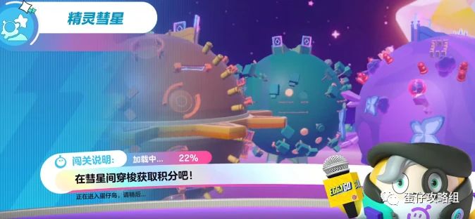 精灵彗星是一张积分图,这张图上有三个星球,小蛋仔需要在每个星球吃到两个积分,积分的位置是随机出现的,可以穿越看一下积分的分布位置。在每个星球吃完积分复位后就可以回到传送门前啦!主要就是吃积分,还是简单不难的。