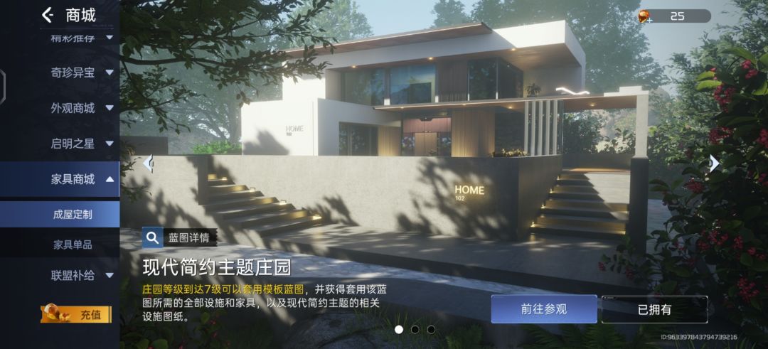 3,房子,房子可以自己建,也可以直接去商店购买,我这边就是直接买了一个,就不用自己去肝材料了(房子需要的材料很多)当然自己建的更好看