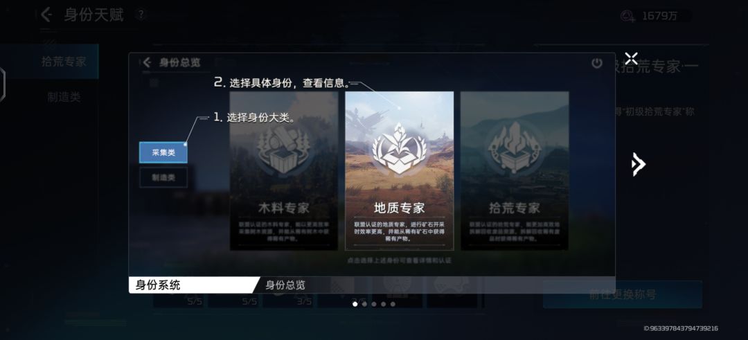 身份系统四十级之前分为木料专家,地质专家和拾荒专家。四十级之后开启第二身份(可以同时拥有第一身份)第二身份分别有护甲, 枪械,家具三大身份。这个就看自己爱好了