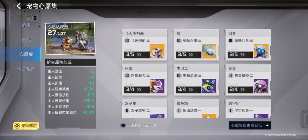 为宠物带来大幅度增强。训练这方面我们可以尝试拉满一只宠物,宠物数据可以通过抽宠物获得的积分兑换,升到五阶的话一只宠物需要1500个数据,肝一点点的话还是很好获得的。备注 我只拉满了我家的鲷鱼烧和回音哦。独宠我家猫爱妃和回爱妃![[表情_羞涩]](https://img.tapimg.com/market/images/352e2ecd3ca5920bc6b3b85d039155ac.png)