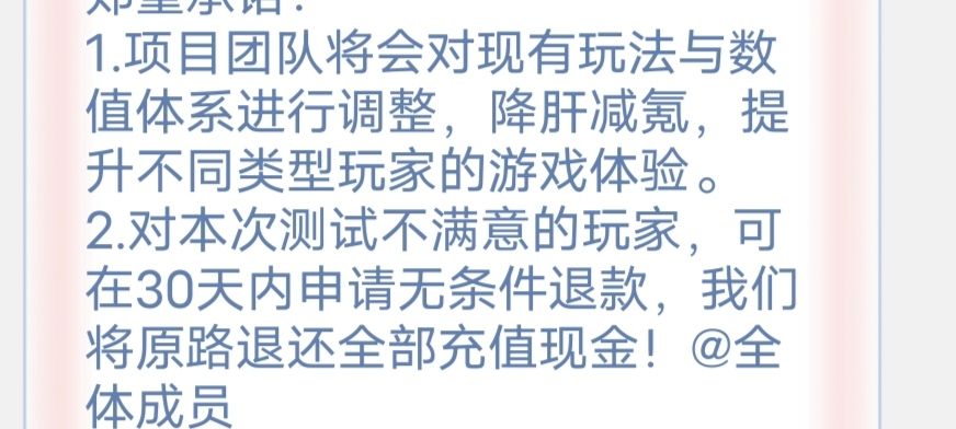 测试结束后头一天发的信息,一款游戏为什么迟迟不公测,因为它有在真正的接受玩家的反馈和意见,进行整改。这样的游戏很难不爱
