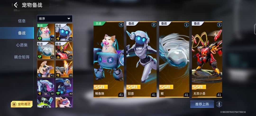 2,宠物备战 备战可以上四只宠物,每个宠物加的评分都不一样,其中金宠加的是最满的,紫宠排第二,蓝宠靠后。有条件的话推荐上四只金,没条件四只紫或一金三紫(当然上自己喜欢的宠物才是最重要的)