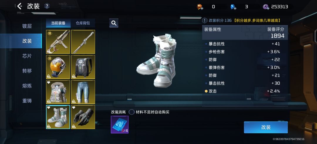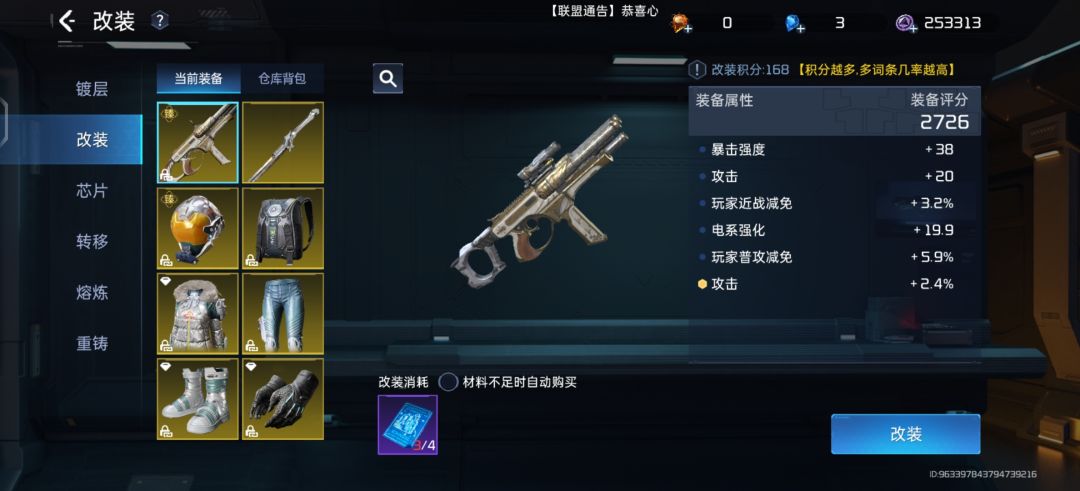 3,装备改装 各项属性加的都挺多的,其中金词条是最好的。注意也有可能改造评分低的也会出好属性,这方面主看个人对当前游戏的理解和需求。装备改装这方面就要看欧不欧了,平常一天能改装六七次左右,能不能出好属性就看你欧不欧啦,非酋就没必要往里冲了![[TapFamily_非]](https://img-tc.tapimg.com/market/images/8db839ddc10eb639fbfd22dd9e0aa571.gif)