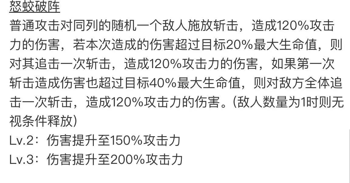 PvP:随着圣血聂离的出现,更意味着赤雷版本的逝去,圣血聂离搭配明月无双资金不怕赤雷的开局雷电了,圣血聂离放前排受击还可以反击,达到第一回合就清场的效果,并且间接克制了明月无双的免死,可以在大招伤害的基础上再加上反击伤害,使明月的免死更容易破解。