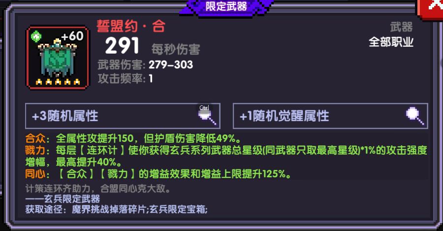 3.玄兵限定(无法用来打有护盾的怪)