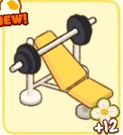 黄色卧推器:肥鹅们在重量健身区健身器材,普通的黄色的卧推器,卧推器分为三个颜色的装饰皮肤,分别是普通黄色的,甜甜圈卧推器(看着像甜甜圈的卧推器,不要去舔铁片),饼干外形卧推器(外形像饼干的卧推器,但是没有饼干香气),三种颜色的卧推器完全兑换完成,可获得225点装扮点。