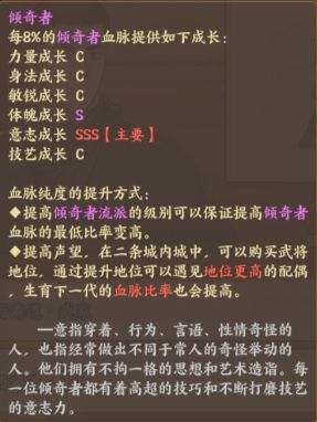 先来了解一下氏族血脉成长的侧重点。倾奇者主要侧重于体魄和意志的成长。