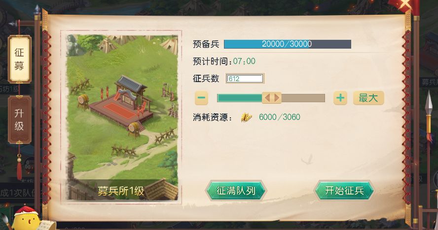 2、在募兵所消耗军粮招募,需要等待一段时间。
