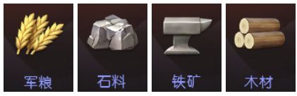 虽然都是物资,但作用有所区别:军粮专门用于在募兵所中征兵,而石料、铁矿、木材专门用于升级建筑。