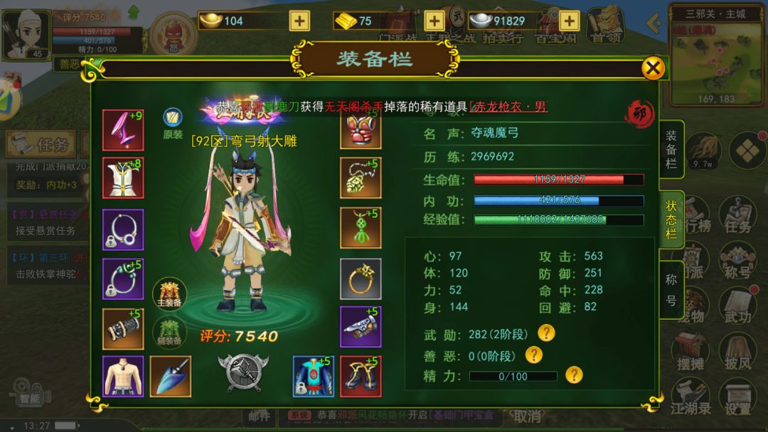 武勋是参加门派战、正邪之战和PK对战所得,武勋值越高,可以获得的奖励就越多。
