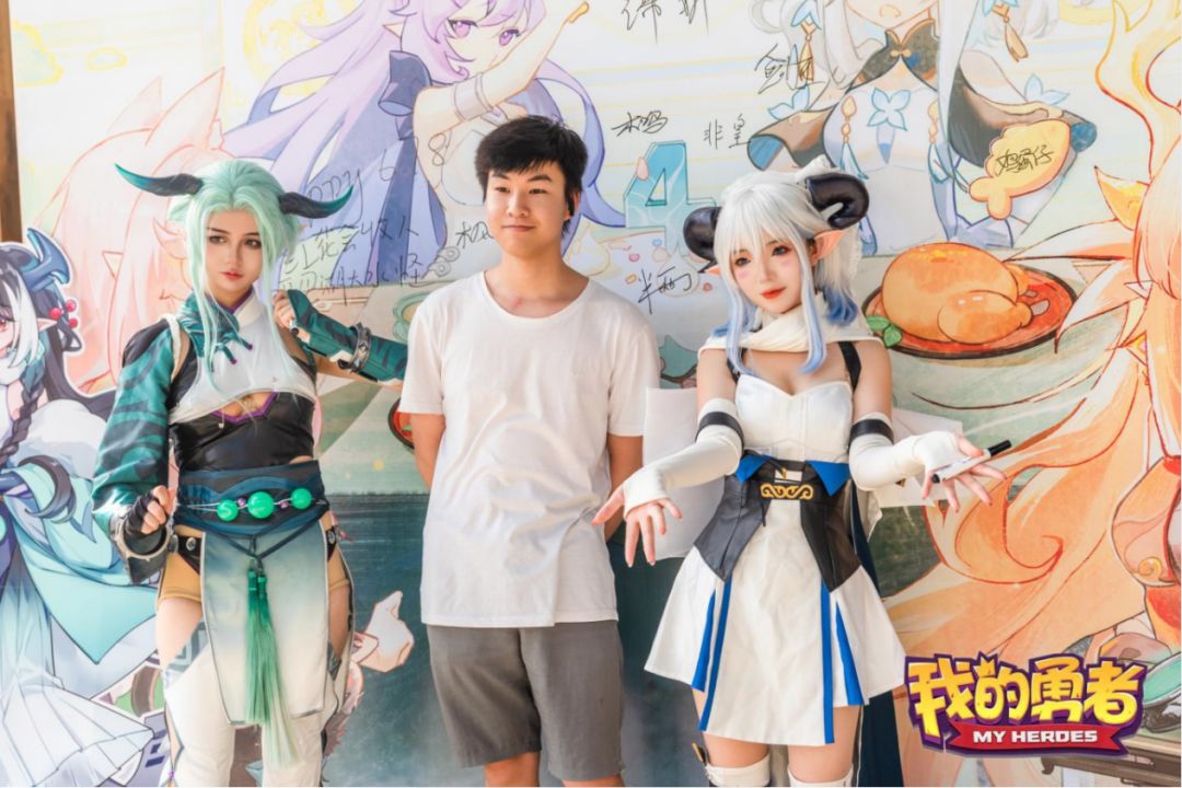 勇者们签到入场,打卡签绘墙,与魔女coser一同合影留念~