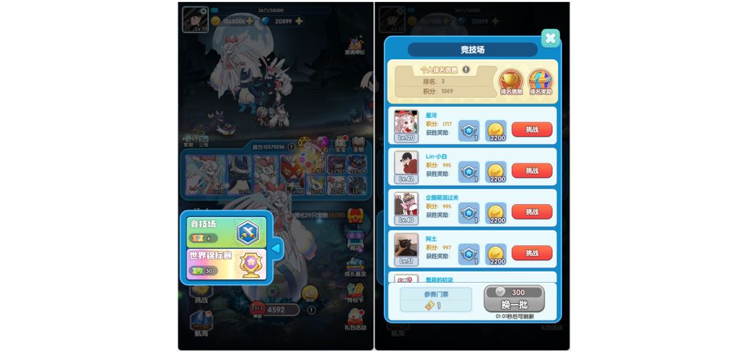 竞技场设有日排行榜和周排行榜。训练家可以主动挑选对手发起挑战,挑战胜利后将从对方手里赢得排行榜积分,同时获得金币和秘银魔章奖励。排行榜的排名越高,日结算、周结算的奖励也会更加丰厚!