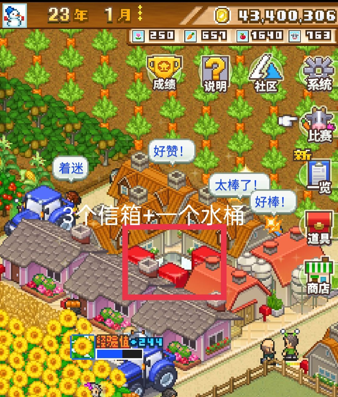 3个相同道具(信箱/独轮车/煮饭套装)一起使用有加成,配合(水桶)使用更好