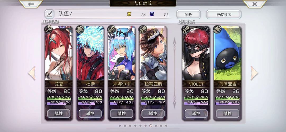 1T:艾夏 - 展火阵,AC杜伊 打火耐,AS拉蒂亚斯 上痛,电锯妹 绝对暴力(BUFF数量 7)