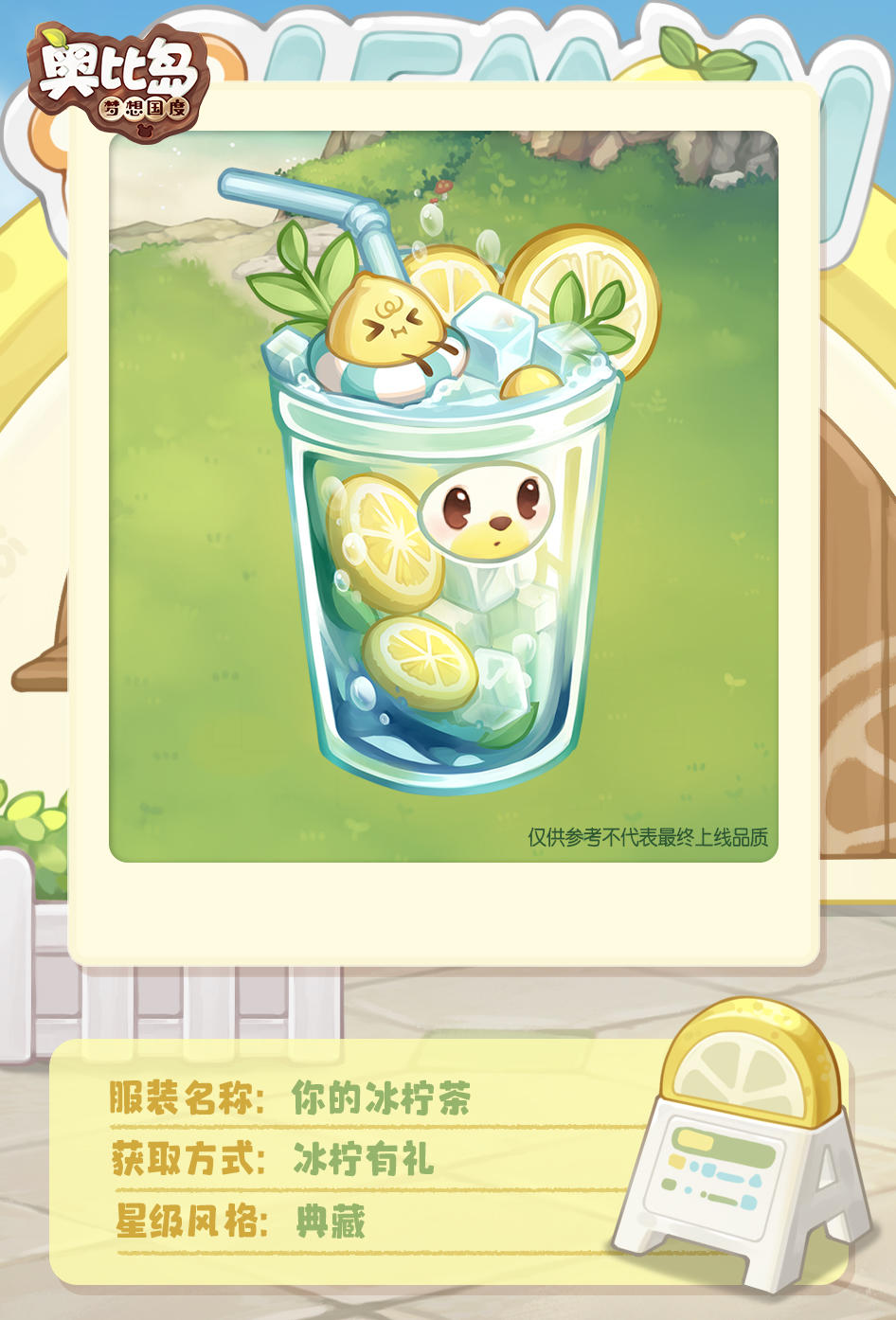 「薄荷冰柠太阳镜」「落星冰柠裤装」「薄荷冰柠连衣裙」「西柚冰柠连衣裙」等限定装扮,还有「柠檬冰饮茶摊」「柠檬清爽冰箱」「柠檬冰爽水池」「柠檬小萝筐」等限定家具散件,特殊动作装扮「你的冰柠茶」、头像框「夏日茶饮」、背景卡「夏日冰柠店背景」、双人表情动作「冰柠茶时光」及晨星品质称号「冰柠一夏」等超多惊喜礼物!此外,在本次活动中完成全部物品收集的小奥比,还可获得个人信息面板出场动作「空间开场(加急)」哟!