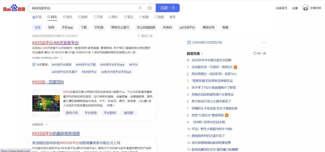 第二步,在百度中搜索 KK对战平台