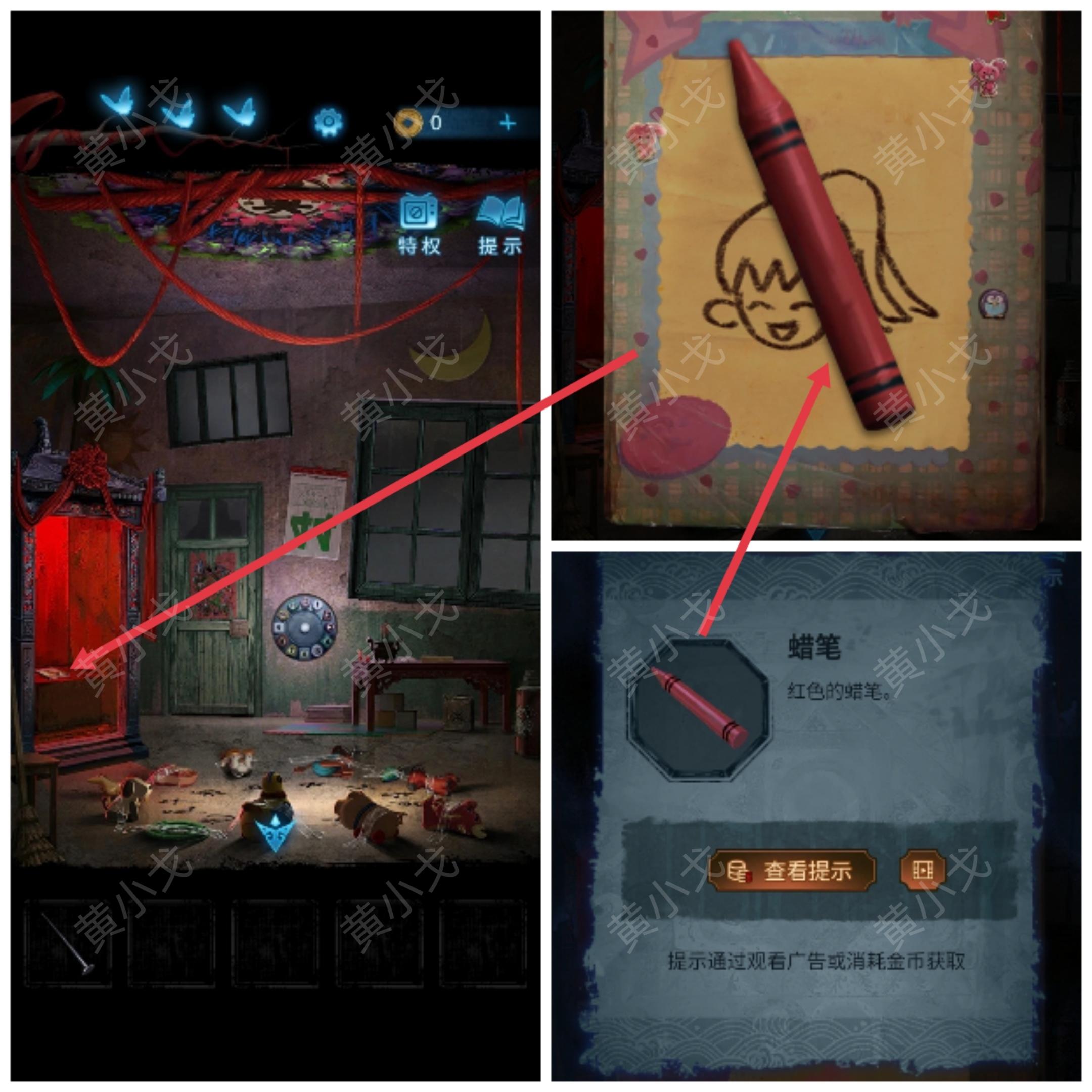 1.(树洞-老屋)点击树洞,进入老屋。在桌子上的香炉里获得【铁条】