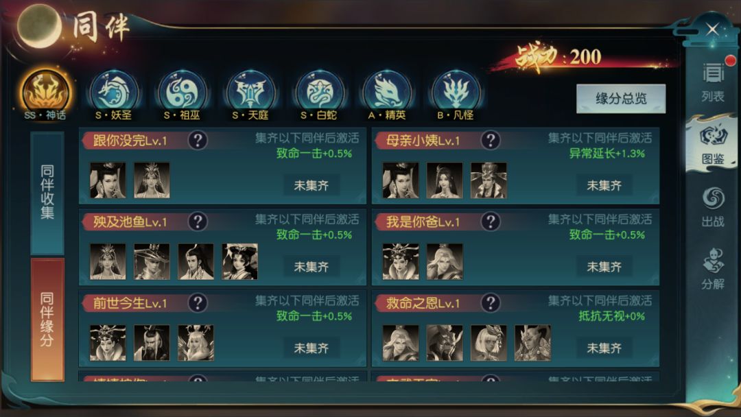 随着玩家游戏剧情的进行,会遇到各种各样的人物出现在同伴系统中。他们将相互结为羁绊、组成队伍,对玩家角色进行加成;同时玩家还可以选择其中一位直接参与战斗,高级同伴更有超强技能,攻击、防御、恢复、控制,各类型同伴任君选择,让你在练级路上不再孤单。