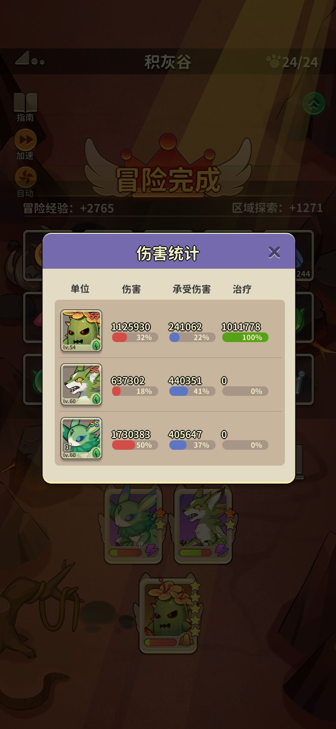 我的最终阵容是(巨耳灵主c前中排高额伤害不会比风狼低多少)仙人打后排兼奶(奶量真的很足)绿茵(主要重置怪物属性兼职奶)
