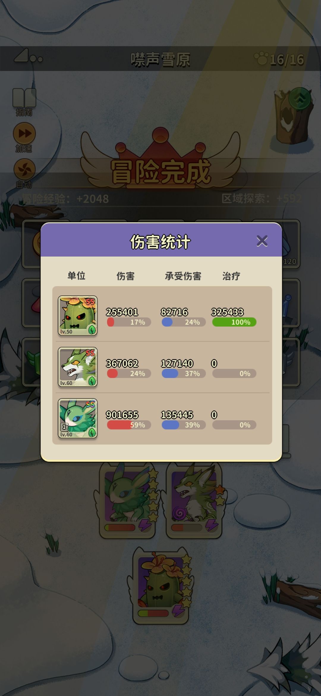 6.0中心地图起源之地采用1队拆3队的方法每个队伍分配一个主力队伍中的怪物,其他空位采用2输出1奶或者1奶2输出来配合,怪物都穿那套等级最高的装备(吃不到加成也穿就堆个数值而已)队伍没条件可以低于主力队伍10级有条件还是拉满
