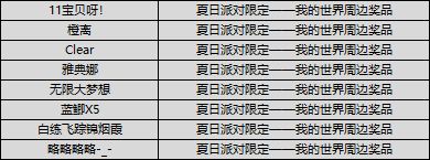 夏日派对限定——我的世界周边奖品(8份)