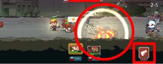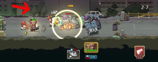 一定要听引导的劝告在前线先守着,不然能通过也会很拖节奏- -。召唤小妹后不要点进攻,点了会将小妹卡在前线里面,跟前线一起吃伤害,而且基地机枪也打不到。最好的位置是在第二个兵营和前线的中间位置,比待机状态稍微前一点。召唤机枪兵,铁拳进入小妹射程后切换为进攻状态。第二波兵要走出前线,待在里面前线会扛不住。大概到背景有三棵树的地方,等后面那群打工感染者整整齐齐的时候开小妹大招轰炸,最多剩下一两只。把能量拿来召唤枪手,两个英雄各升级一次,解决了那三个铁拳就能顺利推过去