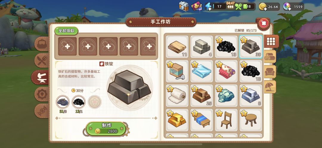 铁锭五十个 需要 铁矿石250个➕煤炭50个➕140.0k金币