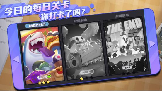 每日关卡是幸存者们资源获取重要的一环,游戏中一共有3种类型的资源副本,分别是:技能材料本、经验副本以及金币副本。